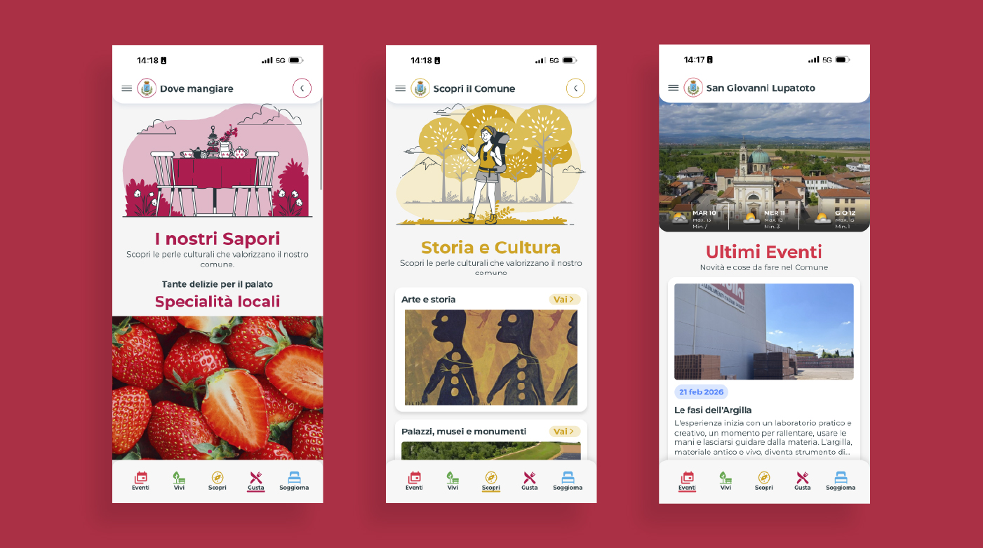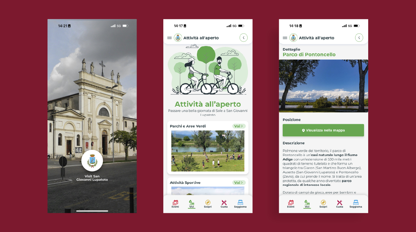 A completamento del progetto abbiamo sviluppato l’App ufficiale Visit San Giovanni Lupatoto per dispositivi iOS e Android, integrata con il portale web e pensata per offrire un accesso immediato e sempre aggiornato alle informazioni turistiche.