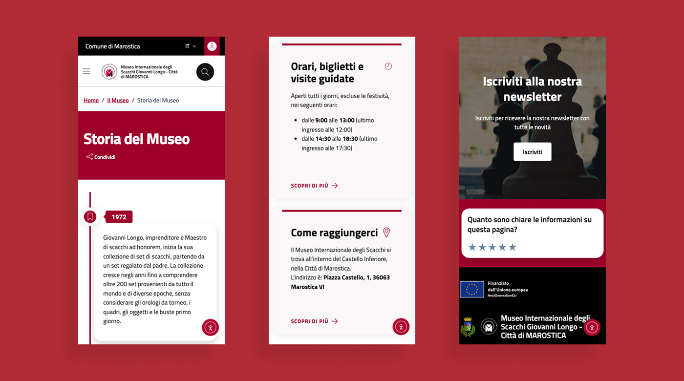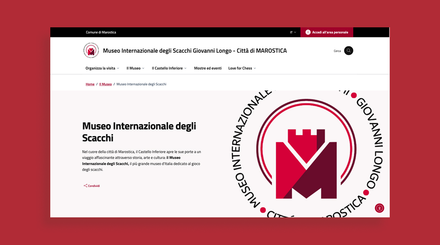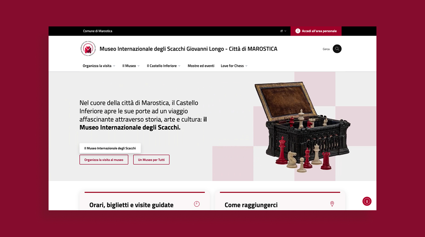 Q-Web ha realizzato il nuovo portale del Museo degli Scacchi sviluppando un template frontend e backend ad hoc per il CMS WordPress, in linea con gli ultimi modelli di Designers Italia per i siti web dei musei civici, progettati per garantire semplicità di navigazione, accessibilità e chiarezza dei contenuti per tutti gli utenti.