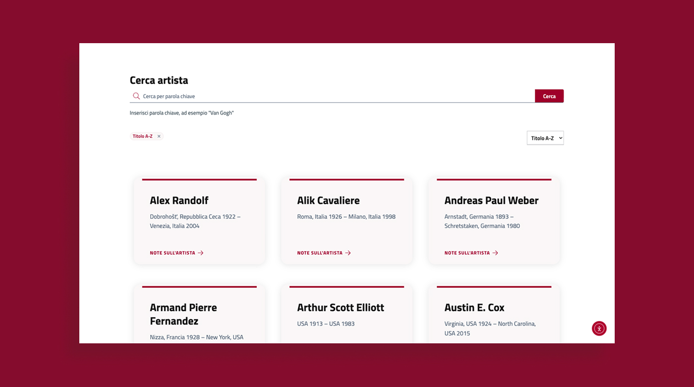 L’esigenza del museo era quella di dotarsi di un sito web moderno e accessibile, capace di valorizzare il patrimonio espositivo e offrire a visitatori, studiosi e appassionati uno strumento chiaro e completo per conoscere collezioni, opere, artisti e attività del museo.